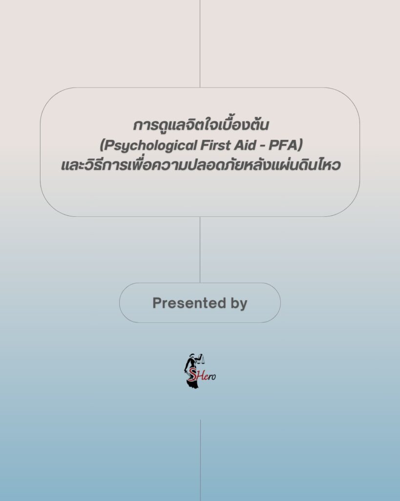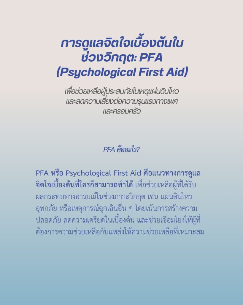 การดูแลจิตใจเบื้องต้นหลังเหตุการณ์ภัยพิบัติ Psychological Frist Aid – PFA