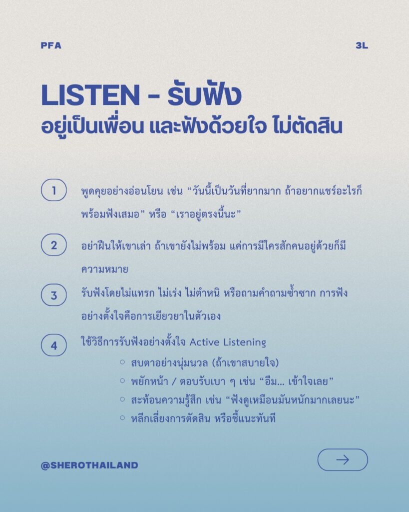 🤍 เรียนรู้ 3 ขั้นตอนดูแลจิตใจเบื้องต้น และเป็นพื้นที่ปลอดภัยให้กันและกัน